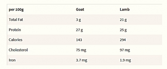 Perbandingan nilai gizi daging kambing dan domba. Sumber: USDA
