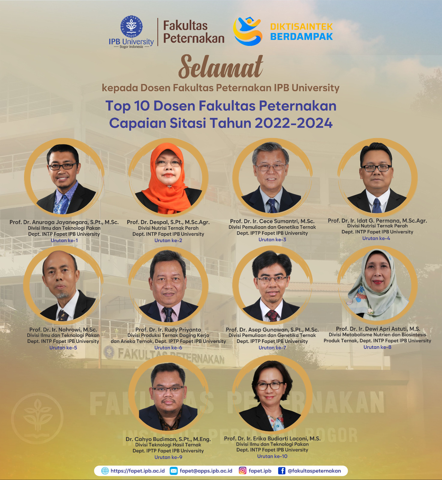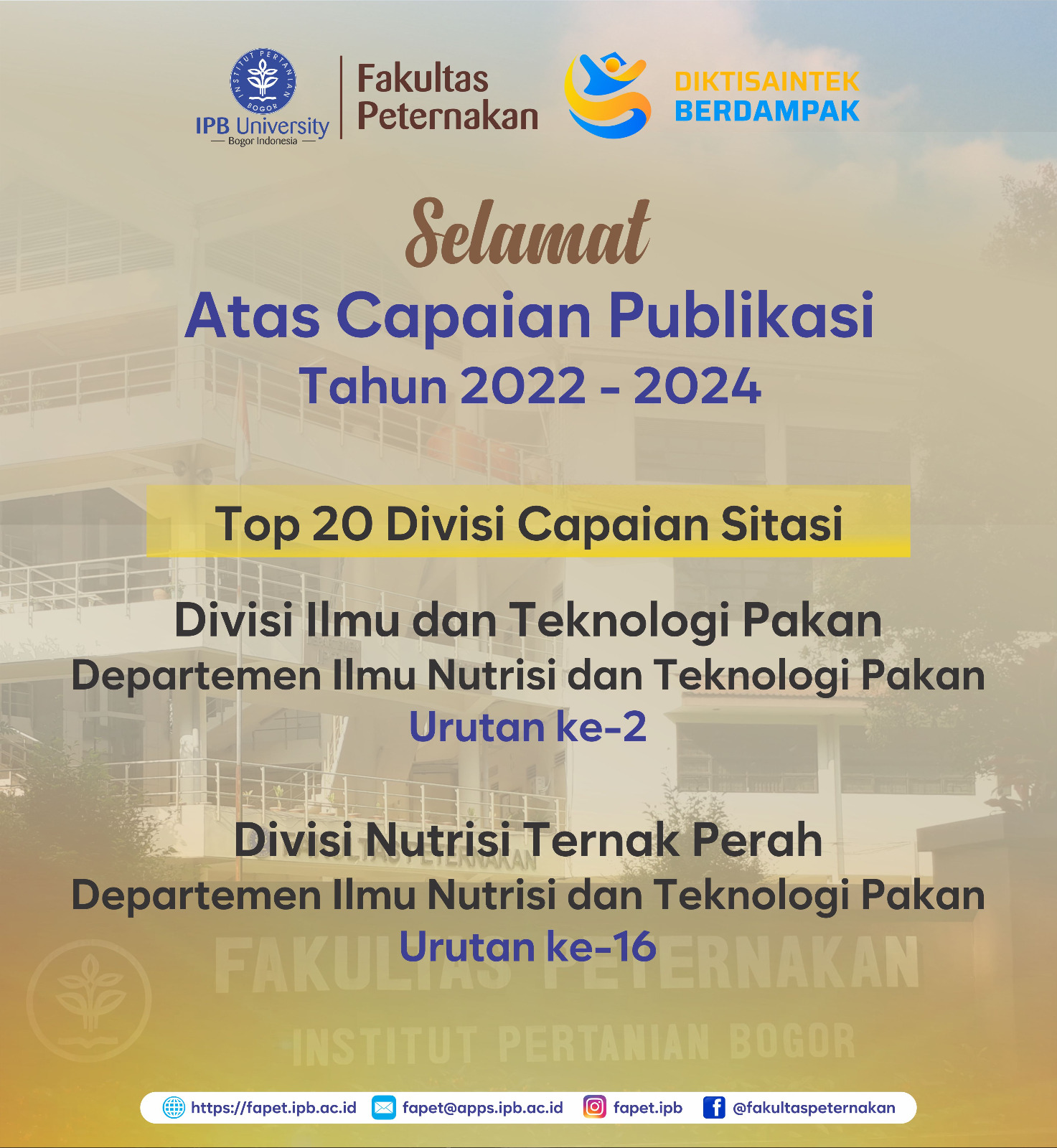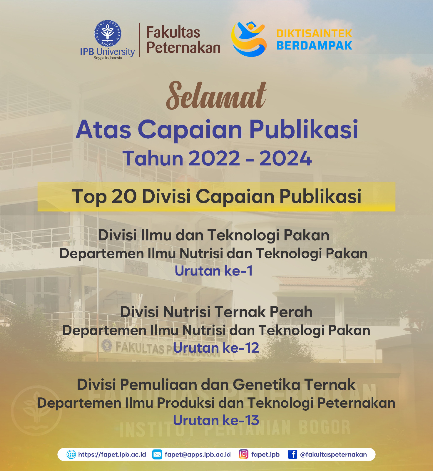 Urutan ke-1 Capaian Publikasi tahun 2022-2024 Fakultas Peternakan IPB University