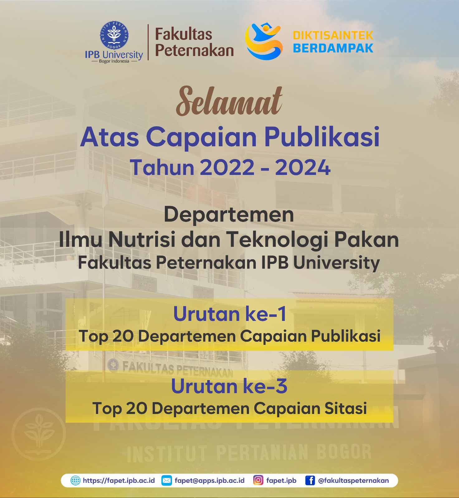 Urutan ke-1 Departemen dengan Capaian Publikasi dan urutan ke-3 Departemen dengan Capaian Sitasi (Departemen Ilmu Nutrisi dan Teknologi Pakan Fakultas Peternakan IPB University)