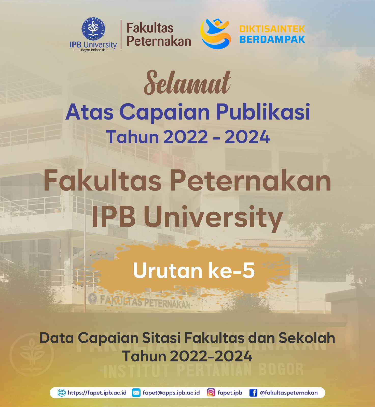 Urutan ke-5 Capaian Publikasi tahun 2022-2024 Fakultas Peternakan IPB University