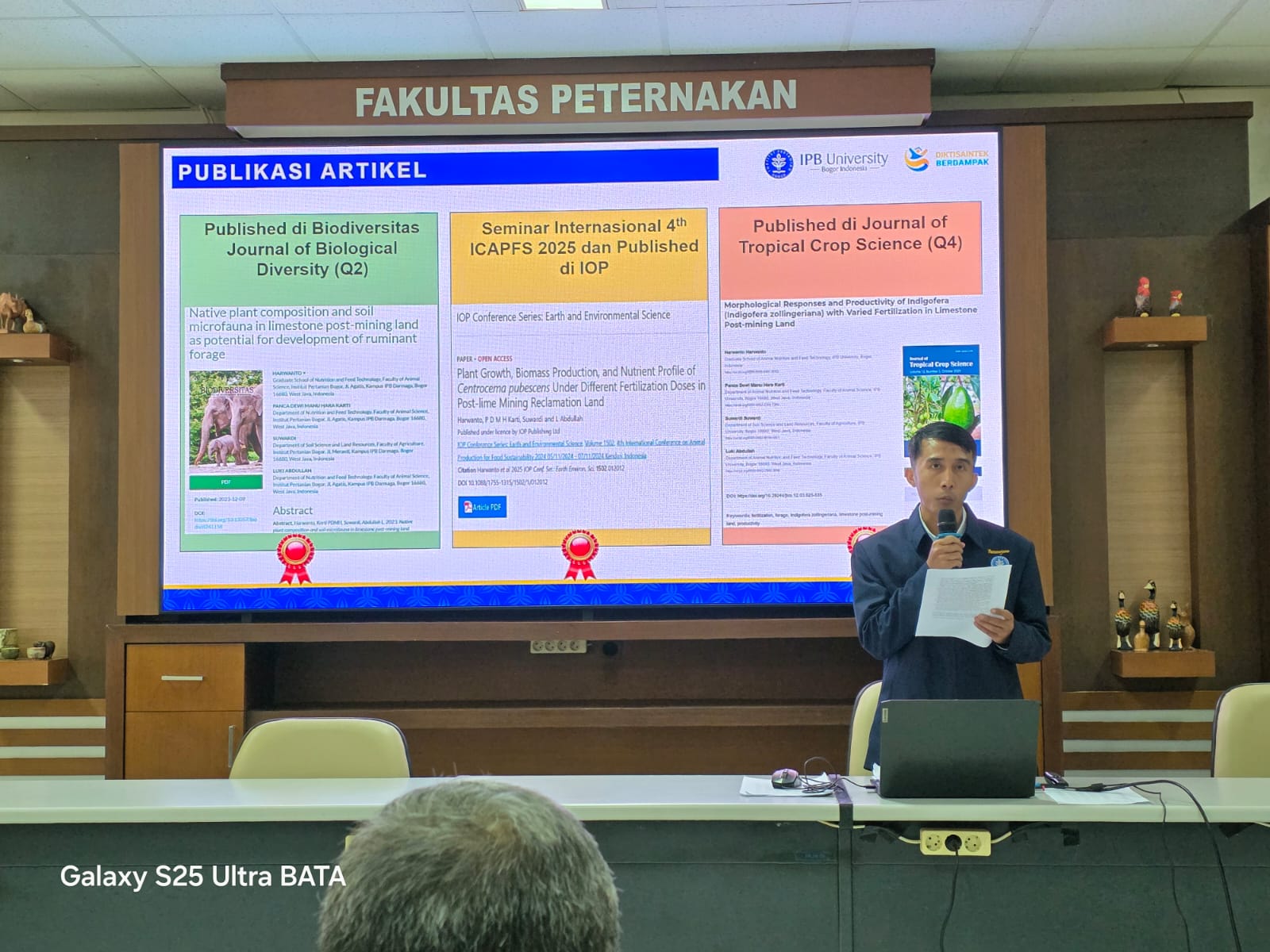Melalui sidang terbuka ini, Fakultas Peternakan IPB University kembali menunjukkan komitmennya dalam menghasilkan lulusan doktor yang mampu memberikan solusi ilmiah bagi pengembangan peternakan, termasuk dalam pemanfaatan lahan-lahan marginal seperti kawasan pascatambang. (cr:Femmy).